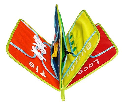 知育玩具 ブック ほん 学習ボード 子供 学習能力アップ ジッパー ちょうちょ結び バックル ボタン 靴ひも スナップボタン オックスフォード布 多機能 英語 ライフスキル