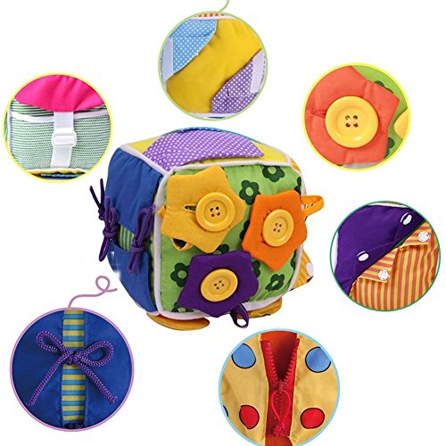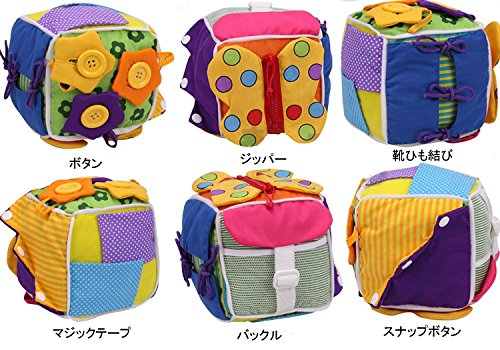 知育玩具 布製玩具 立方体玩具 おもちゃ ボタン ジッパー 靴ひも結び バックル スナップボタン マジックテープ 練習 ライフスキル 生活能力練習 子供 キッズ