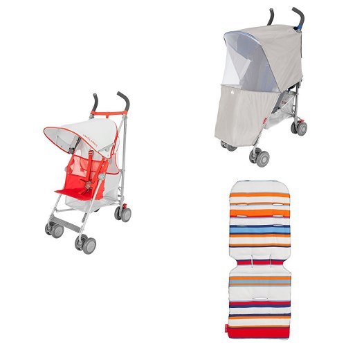 このセット買い商品には「Maclaren Strollers Volo シルバー/マーマレード」と「モスキートネット」と「シートライナーユニバーサル カバナストライプ」が含まれます