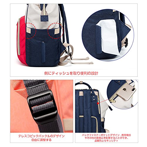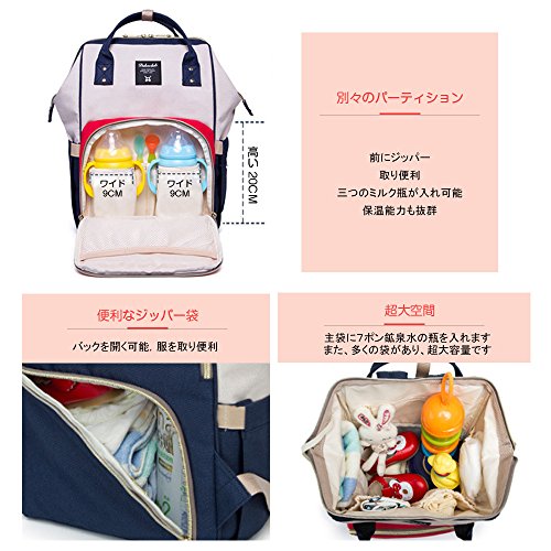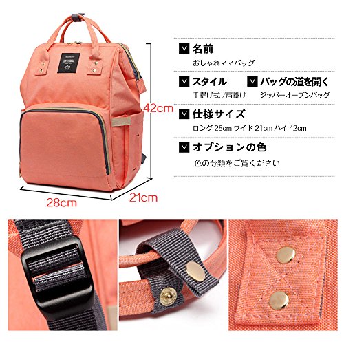 - 正常な空間がある以外、鞄の内部にさまざまな隠し功能袋があります。たくさんの部品あるいはマミ用品を入られます。側面の袋に飲み物やカップをいれます。鞄の内部の両側にカップ入れ空間があります。その設計は秘密ですよ。銀紙から作ったライナーは温度を持ちます。ミルク瓶の温度を持ちます。バックに側ファスナーがあります。開口の設計は最高ですよ。鞄を背負う時、下ろしないと、直接にティッシュペーパーやおむつなどのものを手に入れます。その穴があるから、便利になりますよ。