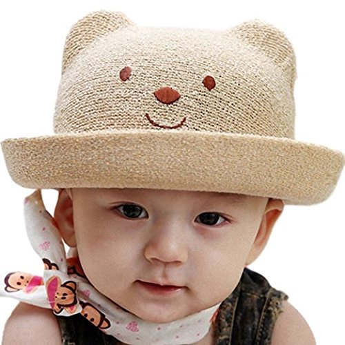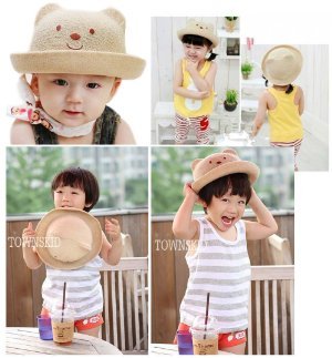 Belka Smile 選べる 5色 くま 麦わら 麦わら帽子 ベビー キッズ 赤ちゃん 子 子供 かわいい 夏 帽子 S 50cm 薄茶色
