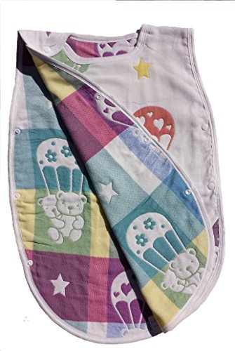 男の子、女の子を問わず使っていただけます。織目の密度が異なるガーゼを6層に重ねることで、ふんわり空気を含み、寒い時は保温性を発揮し、暑い時は汗を素早く吸収しさらさら。寝冷え防止に1年中活躍し、お布団からはみ出しても安心。大きくなってもベストとして使えます。