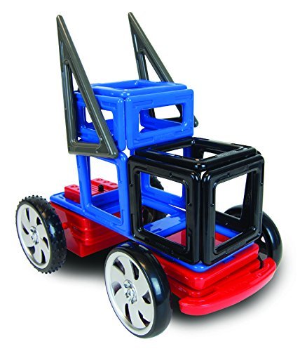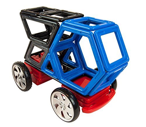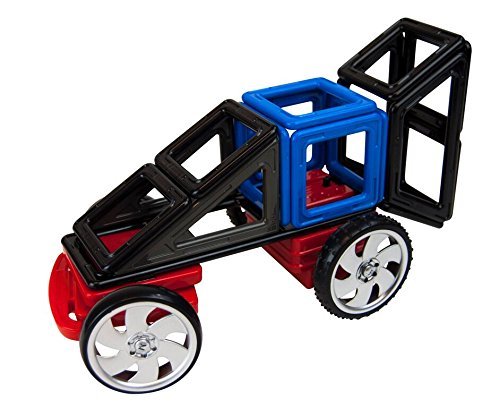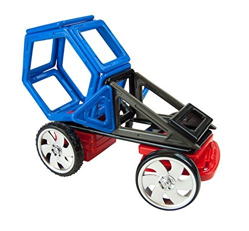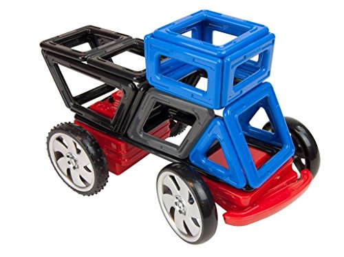 Go from 0-60 in 3 seconds! Start by building super fast roadsters and speed by your friends! or build a truck and haul your MAGFORMERS around town! With new opaque black, blue and red pieces use the magnetic power of MAGFORMERS to design unlimited creations. Follow the enclosed instruction booklet or go your design your own, either way, when each build is complete, take down and start again!