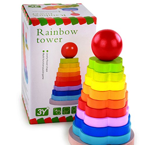 MagiDealレインボータワー木製スタックFoldingパズル教育玩具幼児用子供用