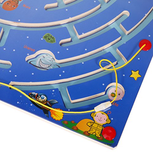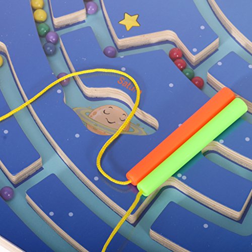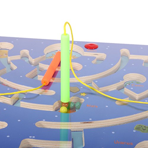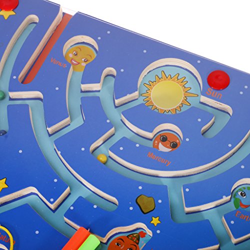 MagiDeal木製パズルマグネットビーズスロット迷路Labyrinth磁気ペンNine Planets