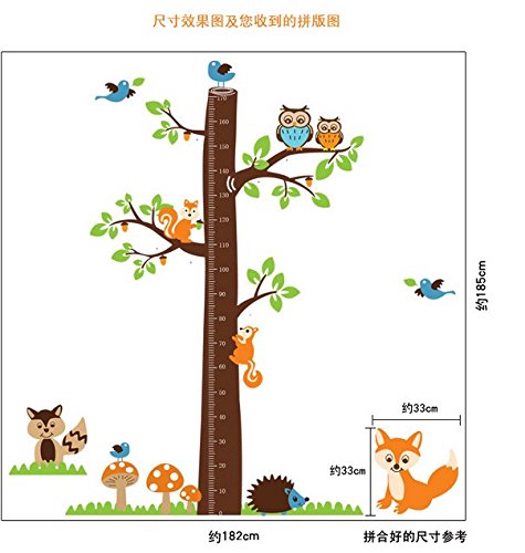 フクロウツリー上のStaning Growth Chart高さチャート壁デカール壁装飾子供部屋子供用