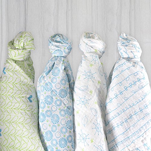 Magnolia Organics 4 Pack Swaddle Blankets ブルー BSB4B