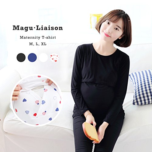 ■(マグリエゾン) Magu・Liaison レディース ファッション マタニティ Tシャツ カットソー 授乳服 授乳口付き 長袖 ロンT トップス 産前 産後 妊婦用 M ~ XL■