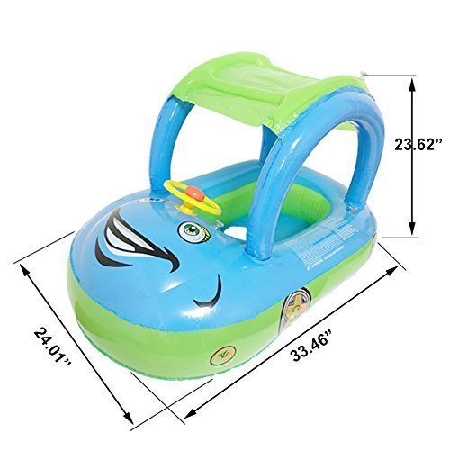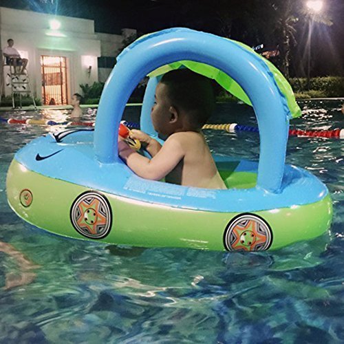 Inflatable Baby Float Seatボートビーチ車サンシェード水プールキャノピー(グリーン+ブルー)
