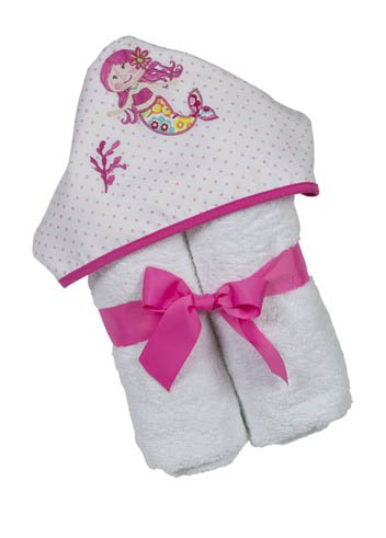Full sized bath towel approximately 52 x 29 in. made of soft, absorbent terry cloth.;The hood has a decorative applique for that special touch.;Towel comes rolled and tied with a ribbon - ready to give as that perfect gift for any occasion!;Color - White;Package Quantity: 1