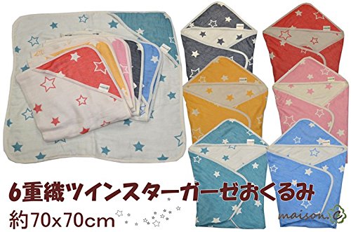 おくるみ 日本製 綿100% 6重ガーゼ ツインスター柄 (TYオレンジ)