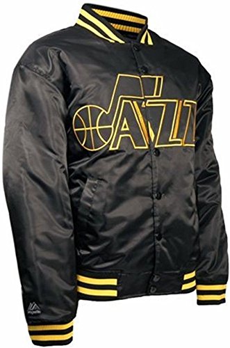 ユタ・ジャズNBA Licensedマジェスティック刺繍ブラックサテンジャケット XL