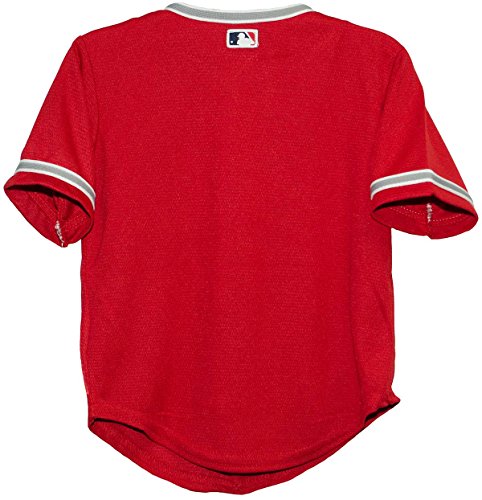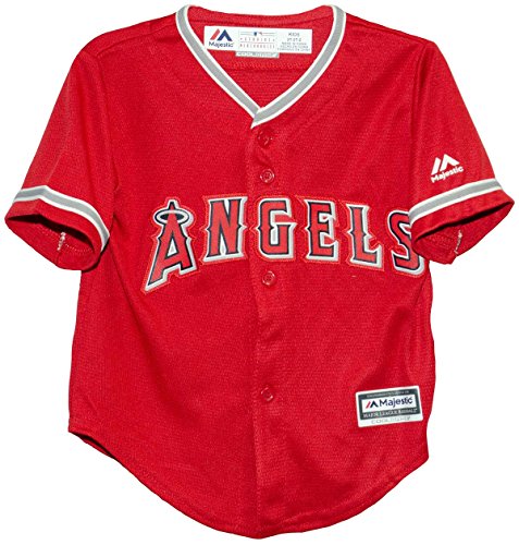 これはロサンゼルス・エンゼルスの代替レッドクールベース子ジャージです。Majestic製、このジャージは、アップリケの前面ロゴのクールベース素材でできています。