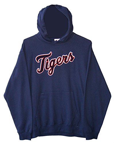 マジェスティックDetroit Tigers大人用サイズ大きいフード付きパーカースウェットシャツ – ネイビーブルー
