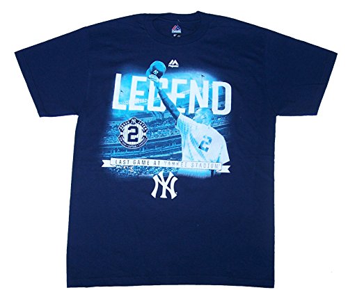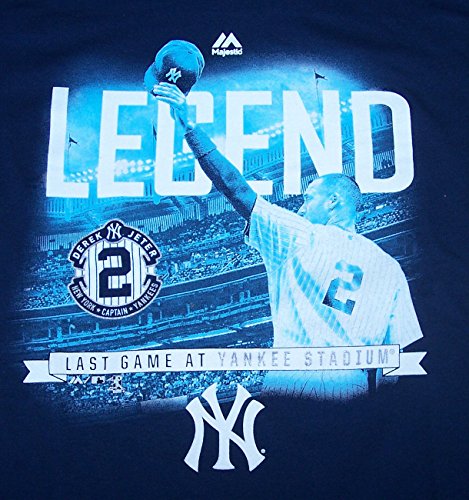 マジェスティックDerek Jeter # 2凡例ニューヨーク・ヤンキースAdult Largeクルーネック最後の試合ヤンキーススタジアム半袖シャツ – ネイビーブルー