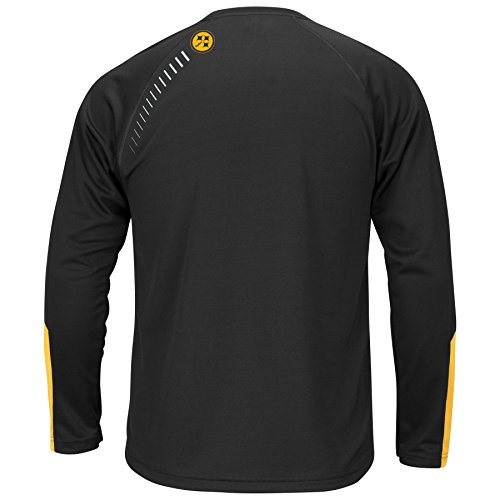 貫通しこの合成クルーネック長袖Tシャツスタイルは、チームのロゴと名前胸の中央に上のscreenrprintedで、反射アクセントのメタリックな外観になっています。逆の生地の袖とコントラストピーシングにこのティーのゲームの質感の外観を追加あなたのスタイルをステップアップです。これは寒い季節の時期にぴったりしたときで高応援しているよ。