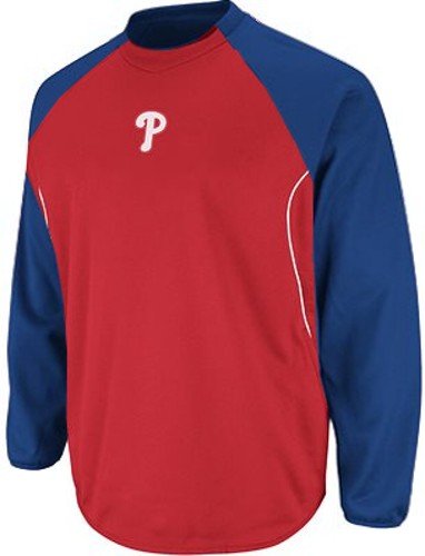 MAJESTICS熱のBase Techフリースは長袖、中重量、クルーネックのテクニカルフリースプルオーバーはサイドとバックのパイピングとコントラストカラーの袖になっています。部分的なリブ修正首開口部により、このピースファクタ、のハンドウォーマーポケットは、あなたがクールで快適にしてくれている。MAJESTICS熱の基本技術で構築快適性、通気性、断熱、とストレッチをsoon-to-beお気に入りの100 %のポリエステル起毛フリース。本物のフィリーズのロゴとセンターバックのMLBシルエットバッターの転送、完璧なルックスです。同じスタイルを装着お好みの選手が着用して提供することができます。