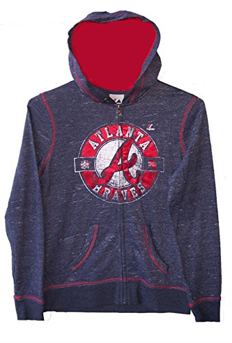 マジェスティックAtlanta BravesレディースサイズMサイズフルZipフード付きパーカーLightweight Sweatshirt w /メタリック箔フロント – ネイビーブルー