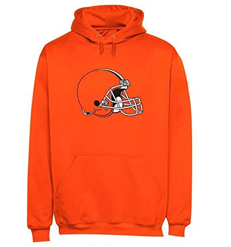 マジェスティックCleveland Browns大人用サイズLargeパーカーフード付きフリースプルオーバーヘルメットロゴスウェットシャツ – オレンジ