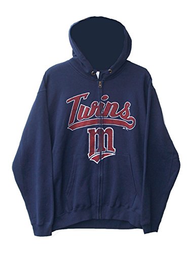 マジェスティックMinnesota Twins Adult Large Full Zip Hoodieフード付きスウェットシャツ/ジャケット – ネイビーブルー