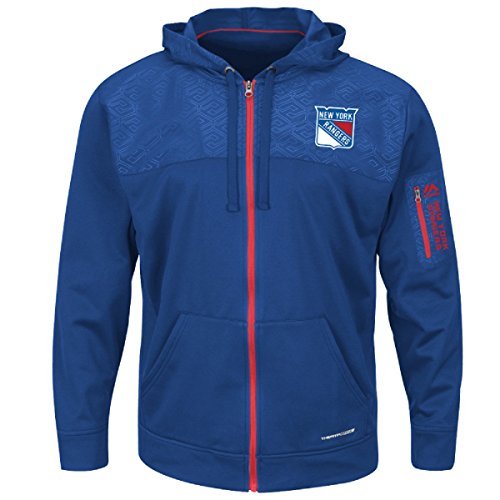 New York RangersマジェスティックメンズReady for Action Full Zip Therma Baseフード付きスウェットシャツ S ブルー