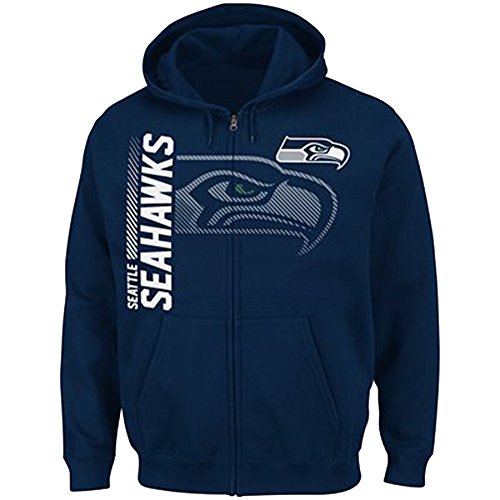 Seattle Seahawks Majestic NFL Touchback V Full Zip Hooded Sweatshirt – Navy 3L