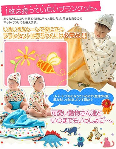 - おくるみとしてやお昼寝の時にそっと掛けたり、厚さもあるのでマット代わりになど、いろいろなシーンで役に立つ必需品。生地が2重で両面楽しめるリバーシブル。厚みもしっかりしていて温かく優しい肌触り。名入れ刺繍も可能で 出産祝いにもお勧めです。