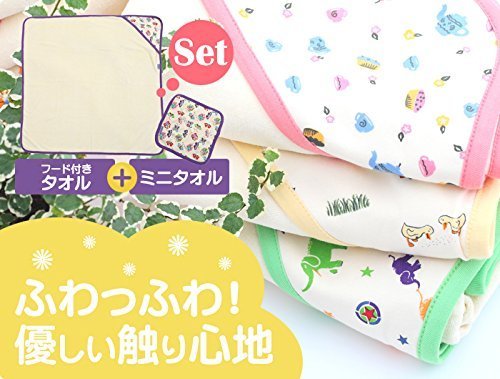 - フード付きでおくるみにも便利なバスタオル。お揃いのカラーのミニタオルが付いてギフトにもぴったりです。リボンをあしらった簡易ラッピング(無料)や、大切な方にはBOXラッピング(183円)、より華やかなカゴのラッピング(313円)もございます。