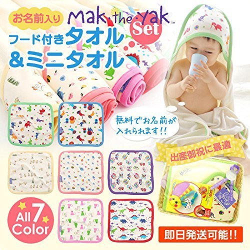 マックザヤック(Mak the yak) フード付き タオル & ミニタオル セット 【 刺繍 名入れ 可能 】 (ゾウ柄) 出産祝い ベビー 新生児 ギフト プレゼント NY発 【ラッピング無料】 正規代理店 名入れあり