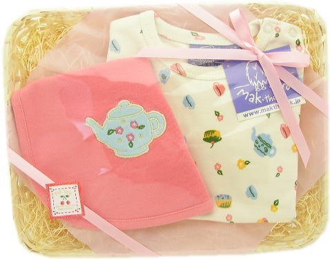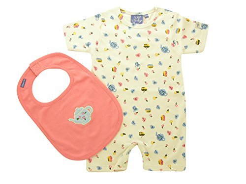マックザヤック(Mak the yak) 半袖 カバーオール ロンパース & ビブ 【2点セット】 ギフトセット 【 名入れ 無料 】 出産祝い ベビー 新生児 ギフト プレゼント 【ラッピング無料/ピンク】 (ティーパーティ柄) 6-12M (80cm) NY発 正規代理店 名入れなし