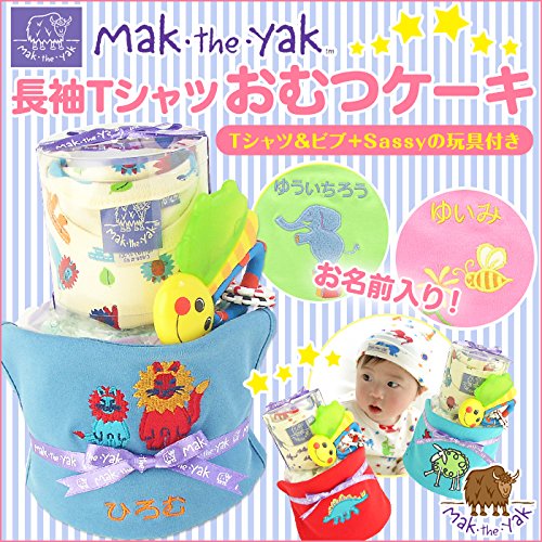 - ■「Mak the yak」 長袖Tシャツ 6-12M/80cmサイズ⇒6ヵ月~12ヵ月位 ■ビブ:コットン100% ■メーカー:アメリカ ■生産国:インド■おむつケーキ製作:日本