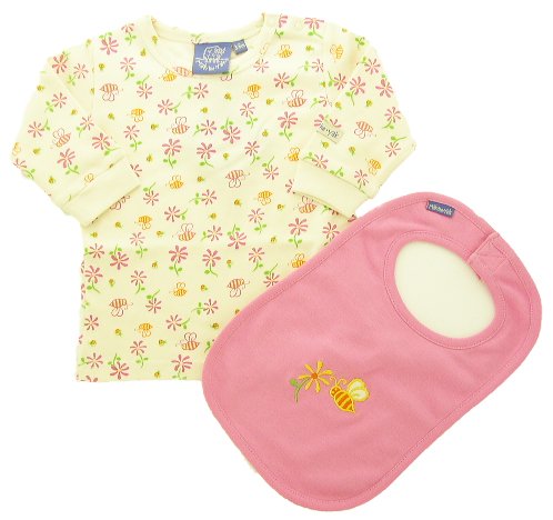 マックザヤック(Mak the yak) おむつケーキ / ロング Tシャツ / ビブ / sassy おもちゃ 【4商品のセット】 【 刺繍 名入れ 無料 】 出産祝い ベビー ギフト プレゼント (6-12M/80cm)( Bee/ミツバチ柄) ( おむつ Mサイズ 7枚) NY発 【 ラッピング ピンク】 名入れあり