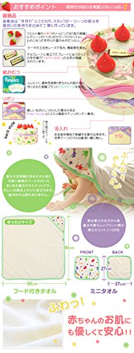 - 実用性があるフード付きタオルと同柄のミニタオルでくるりと巻いています。フェルト製のイチゴの飾りや刺繍プレートに温か味を感じるおむつケーキです。名入れ刺繍で特別な贈り物になります。■おむつケーキの色に合ったリボンでラッピングします。