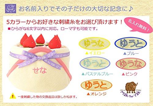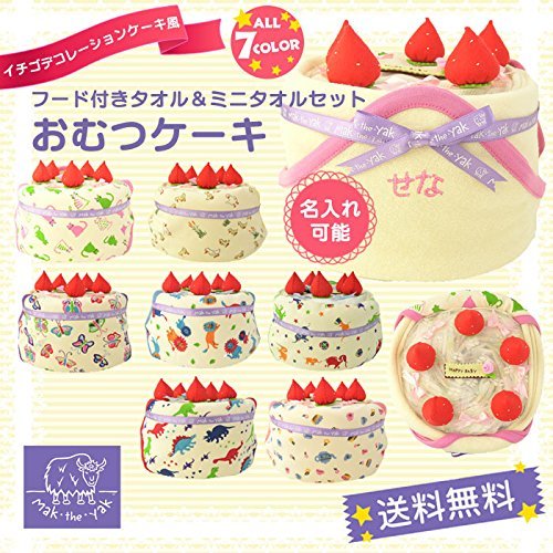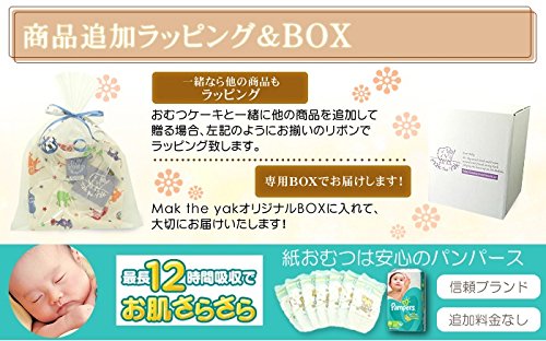 - 【セット内容】Mak the yakフード付きタオル、紙おむつ(パンパースM)14個、フェルト製イチゴ5個、フェルト製プレート1個、飾りリボン・お花、レース ※Mak the yakおむつケーキ専用BOXにお入れしてお届け致します。