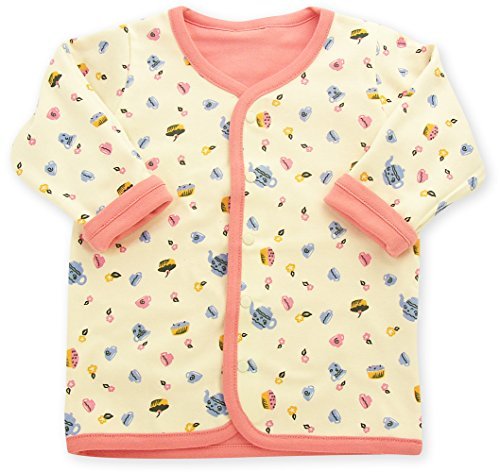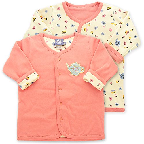 NY発ベビーブランド「Mak the yak」表はアップリケのワンポイント、裏は総柄のリバーシブルで2通りの着せ方が楽しめます。2重構造でしっかり厚手。温かです。 <ティーパーティ柄> やわらかなコーラルピンクにお洒落なブルーのティーポット。 パステルカラーで彩られた楽しいティーパーティです。