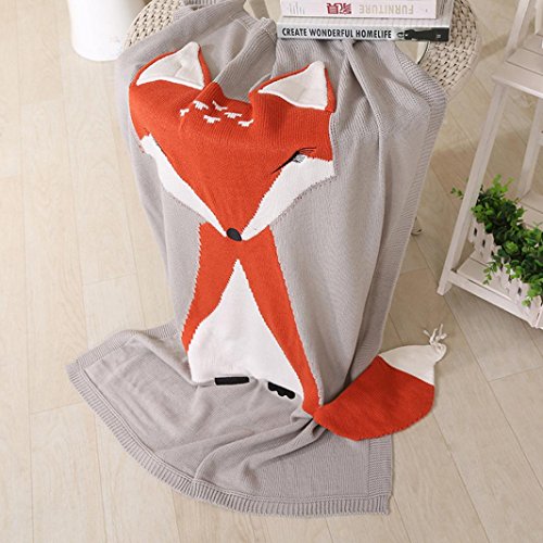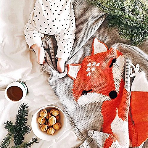 Kidsフォックスニット毛布寝具キルト再生動物新生児ベビースロー毛布Cribラップ毛布0 – 6歳の赤ちゃんby makaor Size: 75cmx 105cm/29.5"x 41.3" グレー