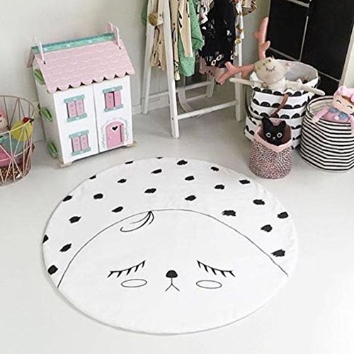 Creepingマット、ベビーPlaymat、幼児赤ちゃん漫画動物ラグCreepingマット滑り止めゲームマットPlaymat毛布子供寝室の装飾0 – 3年 Size: Approx 90cm/35.4 Inch ホワイト