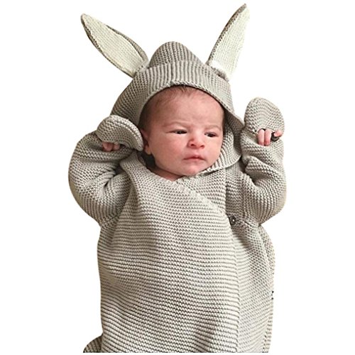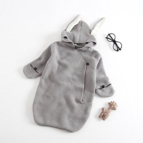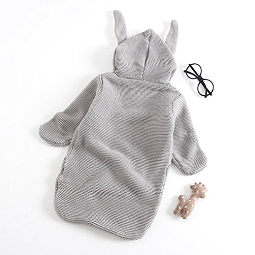 新生児ベビーニットおくるみブランケット幼児3dウサギ耳Sleepingおくるみラップ幼児キュートSleepingバッグ Length:47cm,Bust:64cm,Sleeve:25cm,0-12 Months グレー
