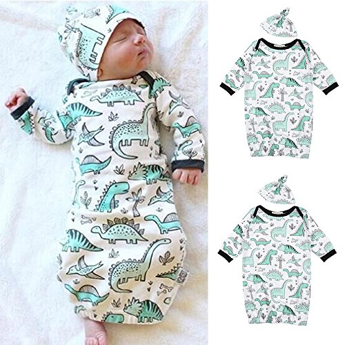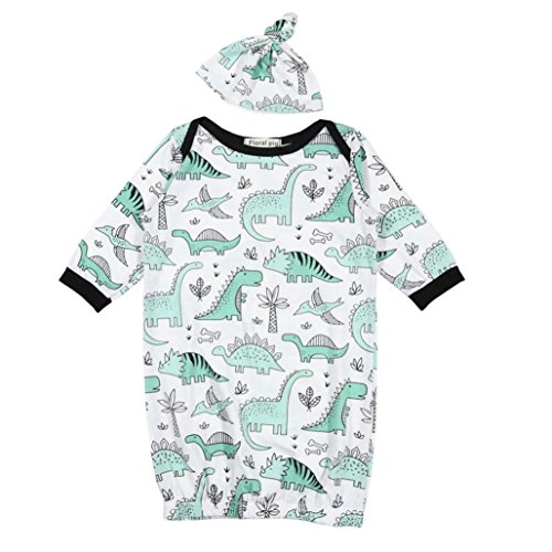 - パッケージ内容: 1個ドレス+ 1個帽子(新生児幼児女の赤ちゃん男の子恐竜パジャマガウンおくるみ服装の絵)