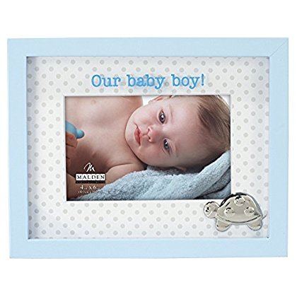 Malden International Designs Baby Memories Our Baby Boy Shadowbox Silkscreened Glass Picture Frame with Mat to Hold 4 by 6-Inch Photo, Blue [並行輸入品]