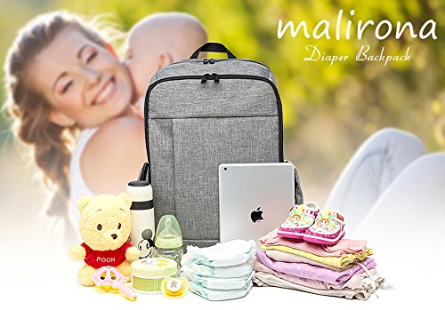 Malirona おむつバッグバックパックママ/お父さんのための防水のおむつバッグベビーカーストラップ付きスタイリッシュな旅行バックパック (ブラック)