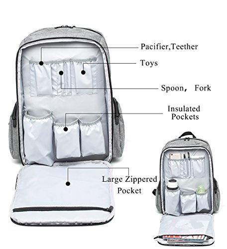- フロント構造:3つの絶縁されたポケット、フォークとスプーンのための2つのスロット、Ipadのための1つのファスナーポケット(9.2 * 10.5インチ)、おむつ、ベビー服などのための1つのジップポケット(11 * 13インチ)。