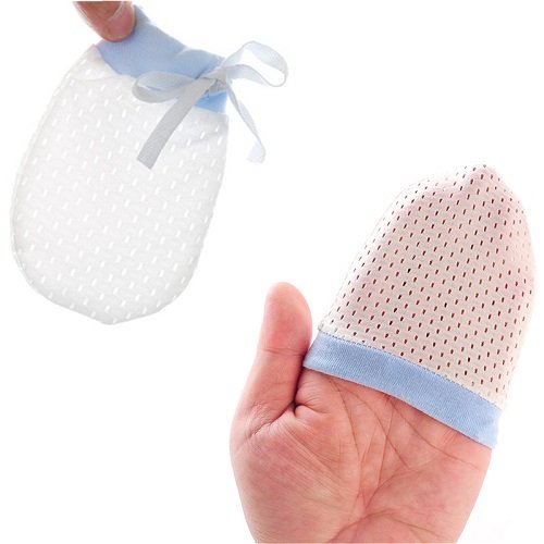 【かきむしり】【保護】 メッシュ新生児ミトン:ブルー