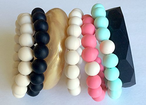 Our Linda silicone teething bracelets are ready to take on that drool and look good doing it! Don't compromise your boho chic style, mama! Stack it with more bracelets and bangles in neutral or complimentary colors, like our Sweet Mint, for an eye-catching pop of color you & your little will both appreciate.