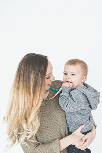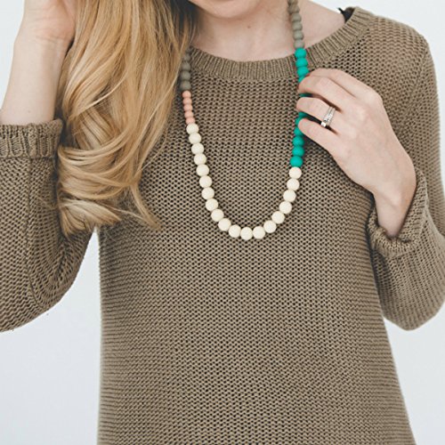 100% food-grade silicone teething necklace for moms;Our signature silicone teething beads promote tactile awareness and are perfect as a nursing necklace;Approximately 14 drop length with safety breakaway clasps and exposed cord around the neck to prevent hair from getting pulled;Our teething jewelry is dishwasher safe on the top rack making this silicone baby teethe easy and convenient to clean;The perfect alternative baby teething toy that you'll want to wear every day to soothe your teething baby