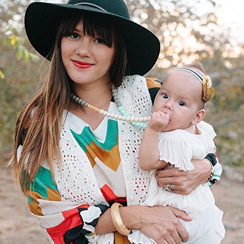 100% food-grade silicone teething necklace for moms;Our signature silicone teething beads promote tactile awareness and are perfect as a nursing necklace;Approximately 15 drop length with safety breakaway clasps and exposed cord around the neck to prevent hair from getting pulled;Our teething jewelry is dishwasher safe on the top rack making this silicone baby teethe easy and convenient to clean;The perfect alternative baby teething toy that you'll want to wear every day to soothe your teething baby