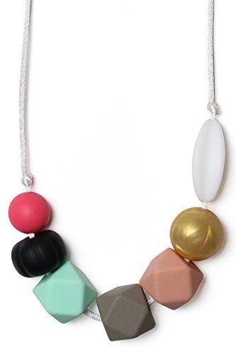 100% Food-grade Silicone Teething Necklace for Moms, Our signature hexagon shaped silicone teething beads promote tactile awareness and are perfect as a nursing necklace, Approximately 14" drop length with safety BREAKAWAY clasps and exposed cord around the neck to prevent hair from getting pulled, Our teething jewelry is dishwasher safe on the top rack making this silicone baby teether easy and convenient to clean, The perfect alternative baby teething toy that you'll want to wear every day to soothe your teething baby