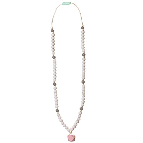 100% food-grade silicone teething necklace for moms;Our signature hexagon silicone teething beads promote tactile awareness and are perfect as a nursing necklace;Approximately 16.5 drop length with safety breakaway clasps and exposed cord around the neck to prevent hair from getting pulled;Our teething jewelry is dishwasher safe on the top rack making this silicone baby teethe easy and convenient to clean;The perfect alternative baby teething toy that you'll want to wear every day to soothe your teething baby