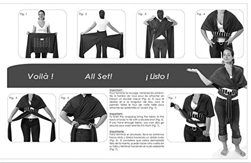 One size one wrapping method distributes weight evenly on the entire body moderate to long baby wearing periods 4 plus positions hip carry forward facing kangaroo carry cradle hold and back carry plus sizes available;5 meters of slightly stretchy fabric resistant elastic poly cotton blend absorbs humidity retains stretch memory long laundering life;Machine wash cold, gentle cycle 30C, do not bleach, lay flat to dry;Woven, dyed and 100% made entirely in Canada;Health Canada compliances