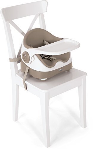 Easily fits most chairs securely, so you can boost your little one up to almost any table.;4 independently adjustable non-slip feet and 2 chair harnesses for extra safety and stability.;Provides added comfort and support for baby with removable soft seat insert and 3-position removable tray.;Easy to wipe clean, with no crevices to trap food or crumbs.;Includes carry handle for portability and use away from the home.